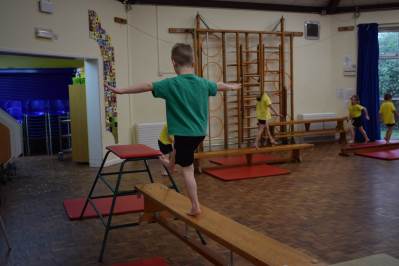 Each week, pupils have been learning how to balance, stretch and move with control, exploring different shapes such as tucked, star and straight shapes. They have also been practising safe jumping and landing, working on their coordination and confidence as they travel in different ways around the hall.