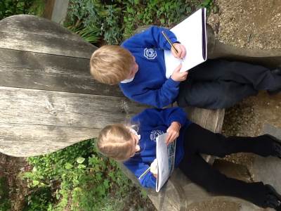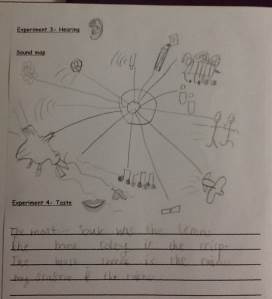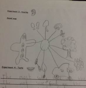For hearing, we went outside and created some incredible sound maps. Class Two sat in the reflection garden and drew pictures to represent all the different sounds they could hear.