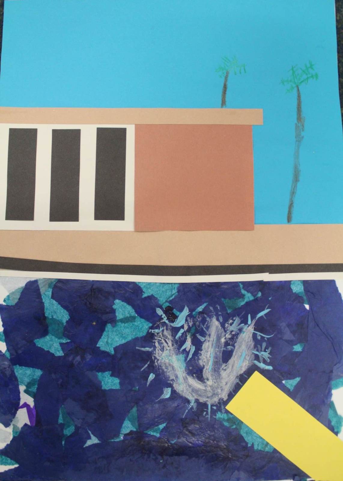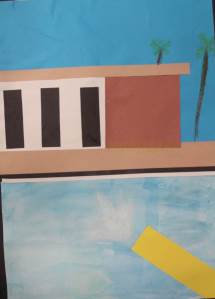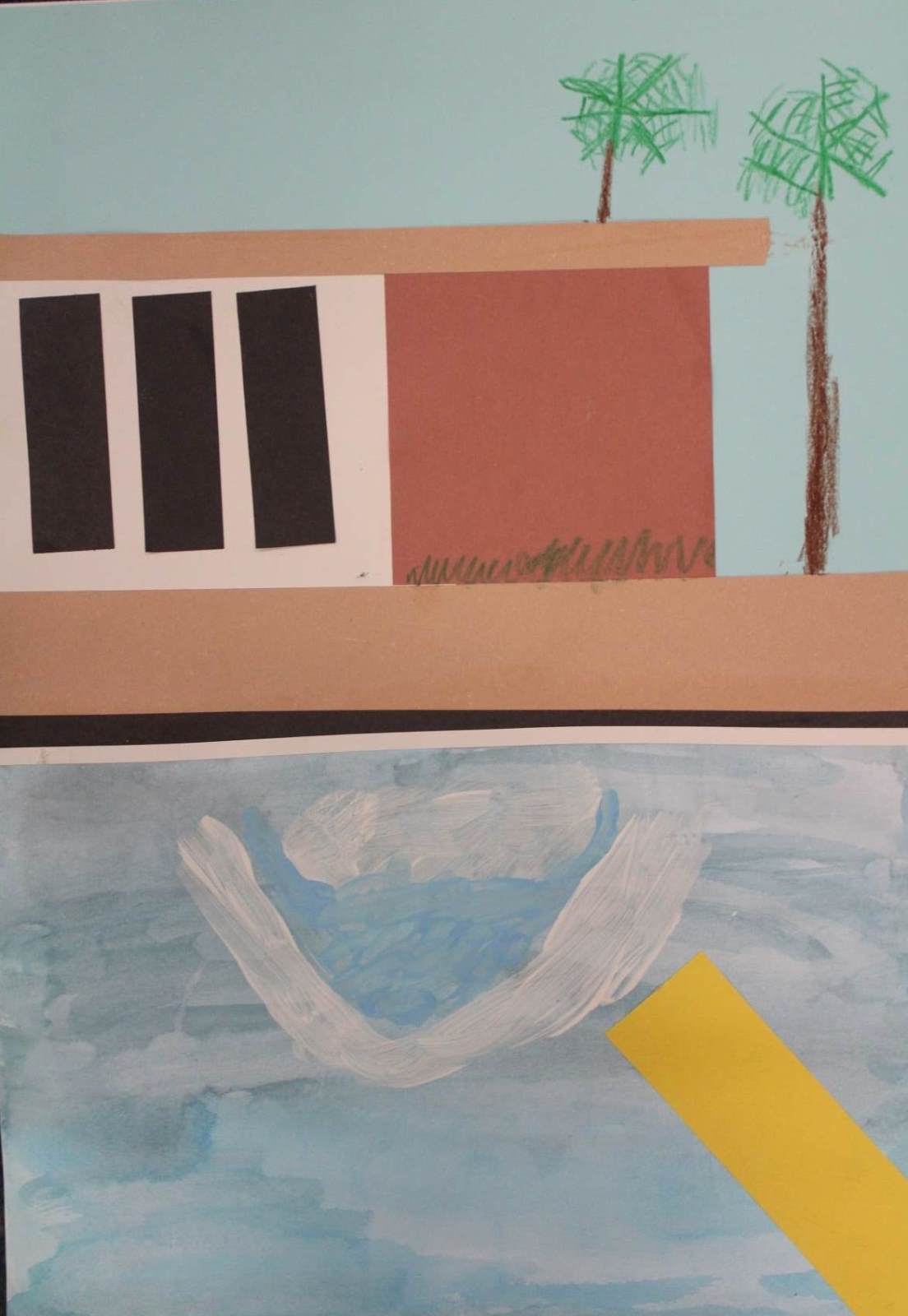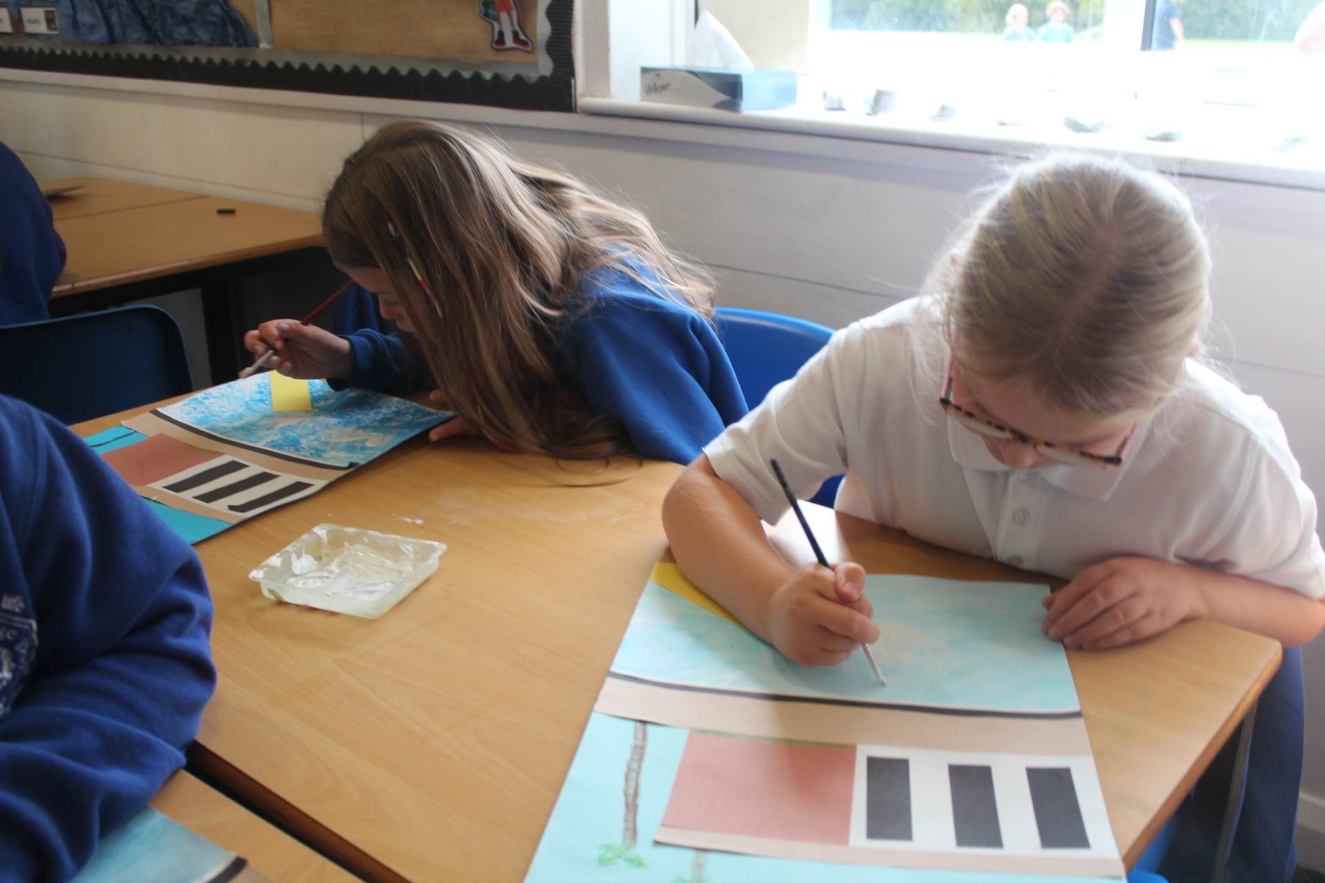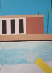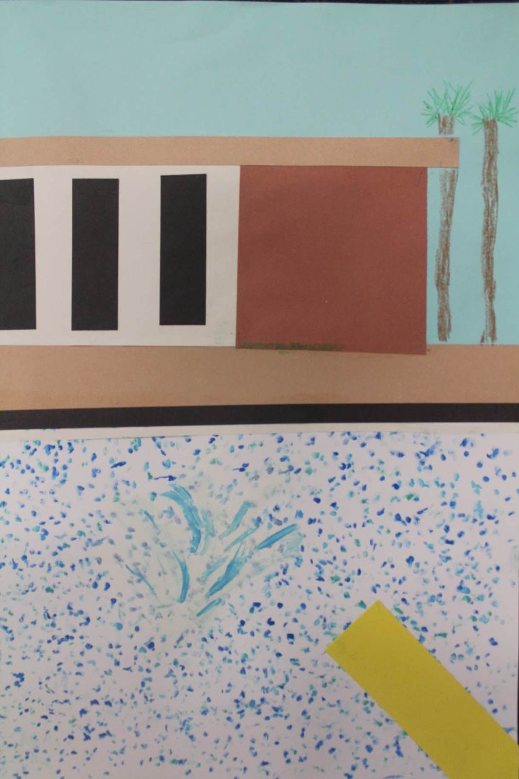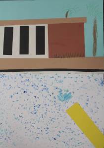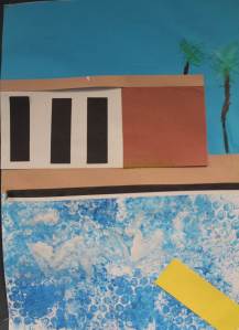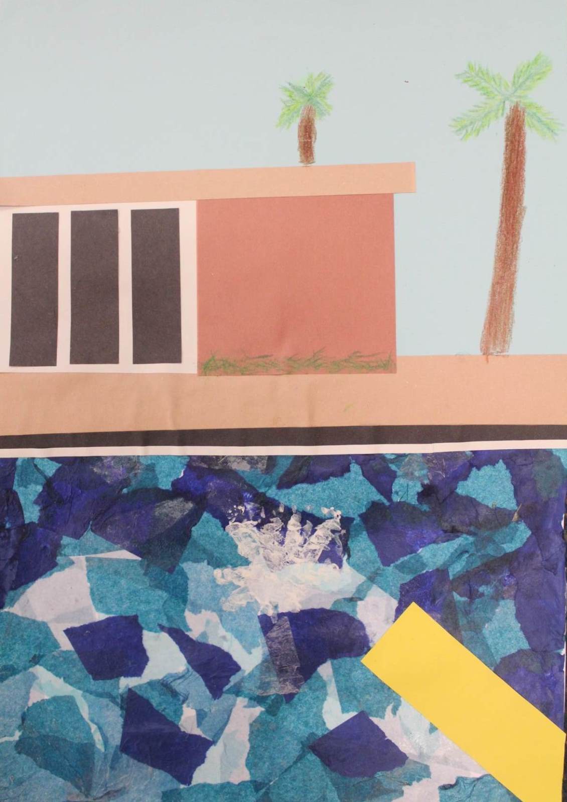 Class 4 have been looking at the British artist David Hockney and his painting A Bigger Splash. The children tried out different techniques to represent water before creating their own version of A Bigger Splash, choosing their preferred water technique for the pool and using collage for the buildings.
