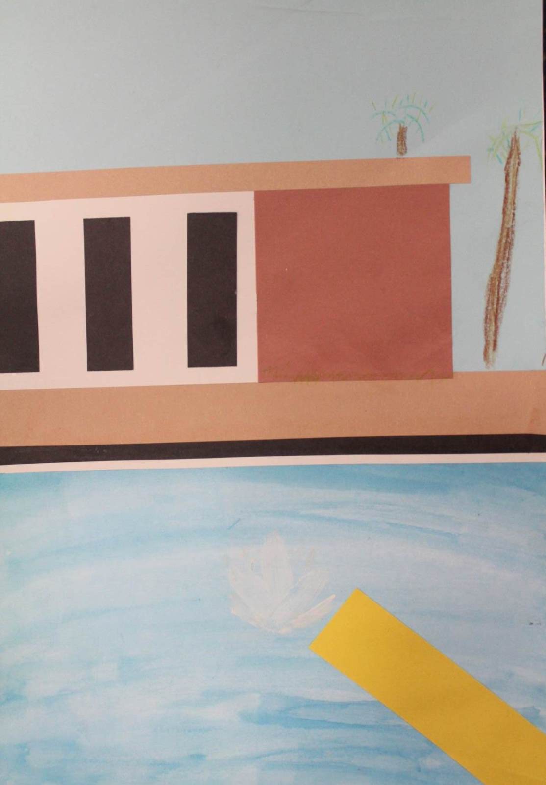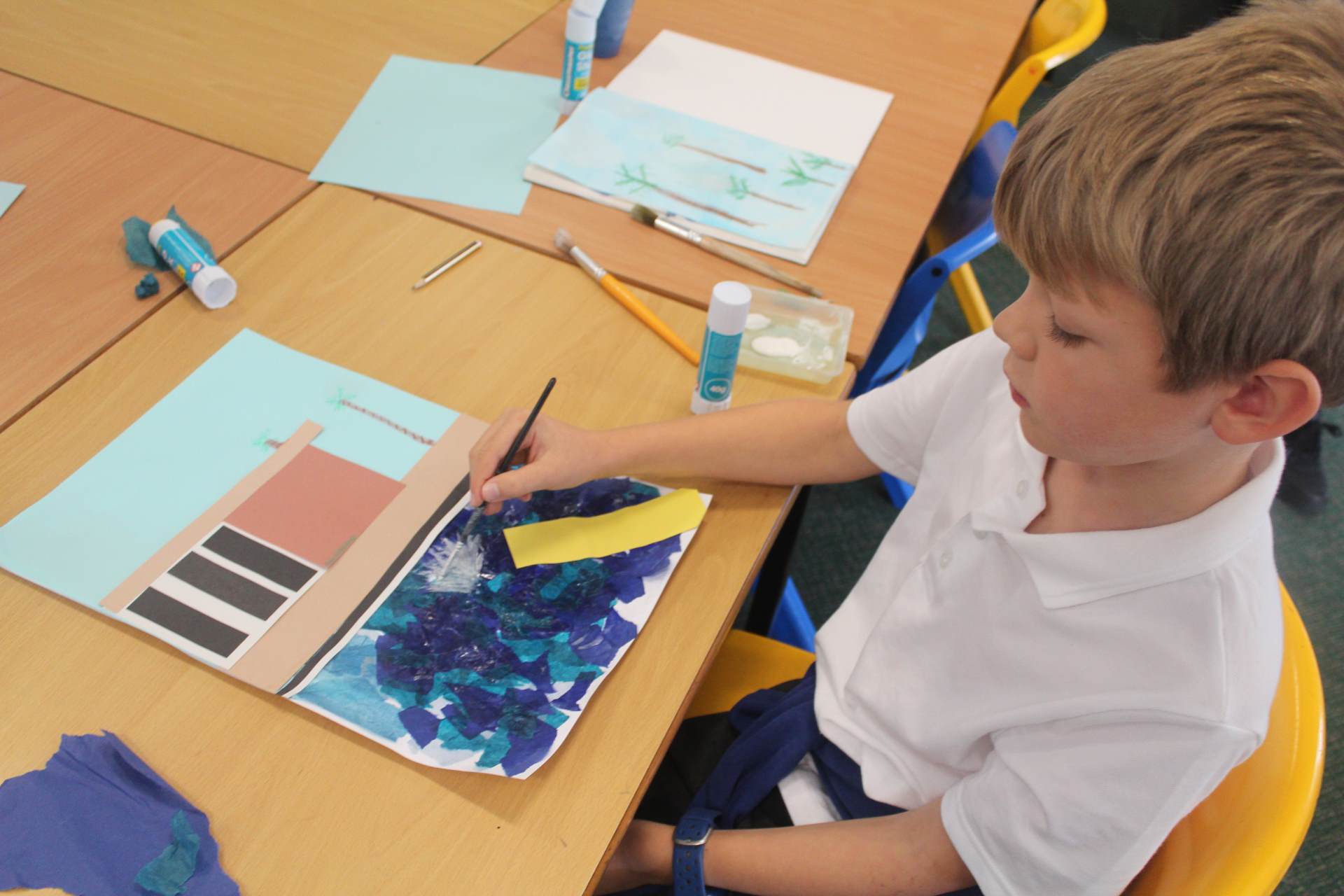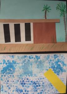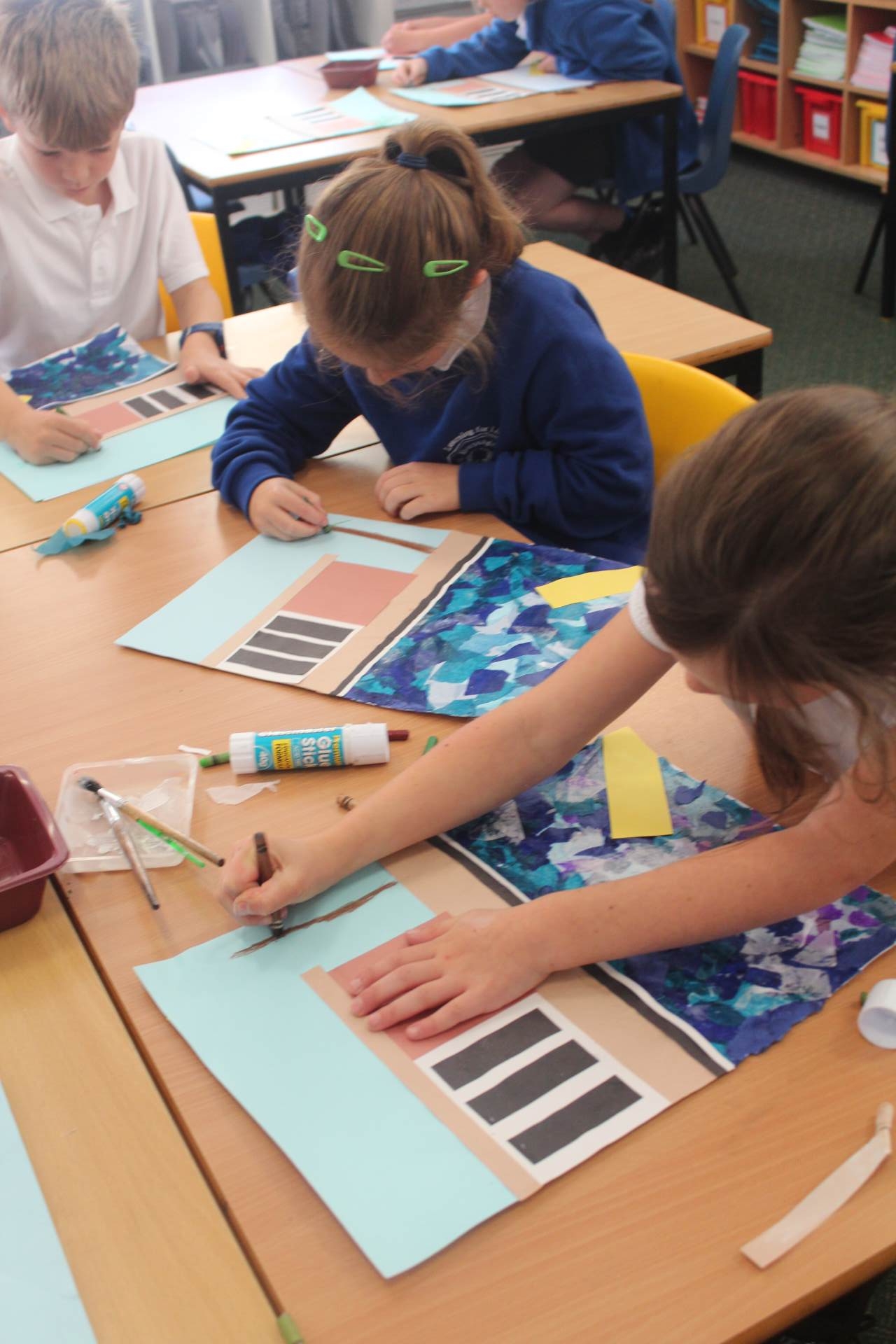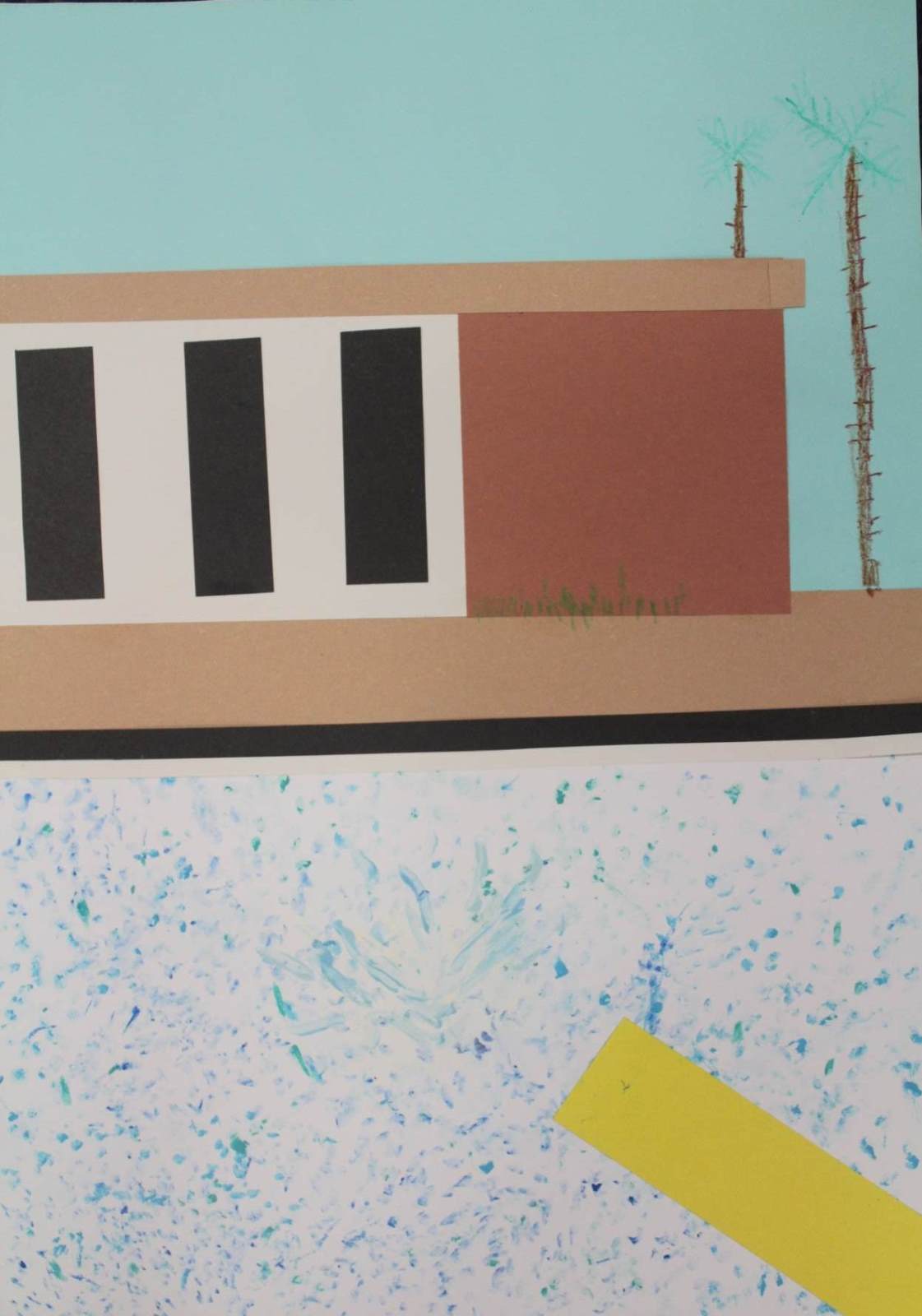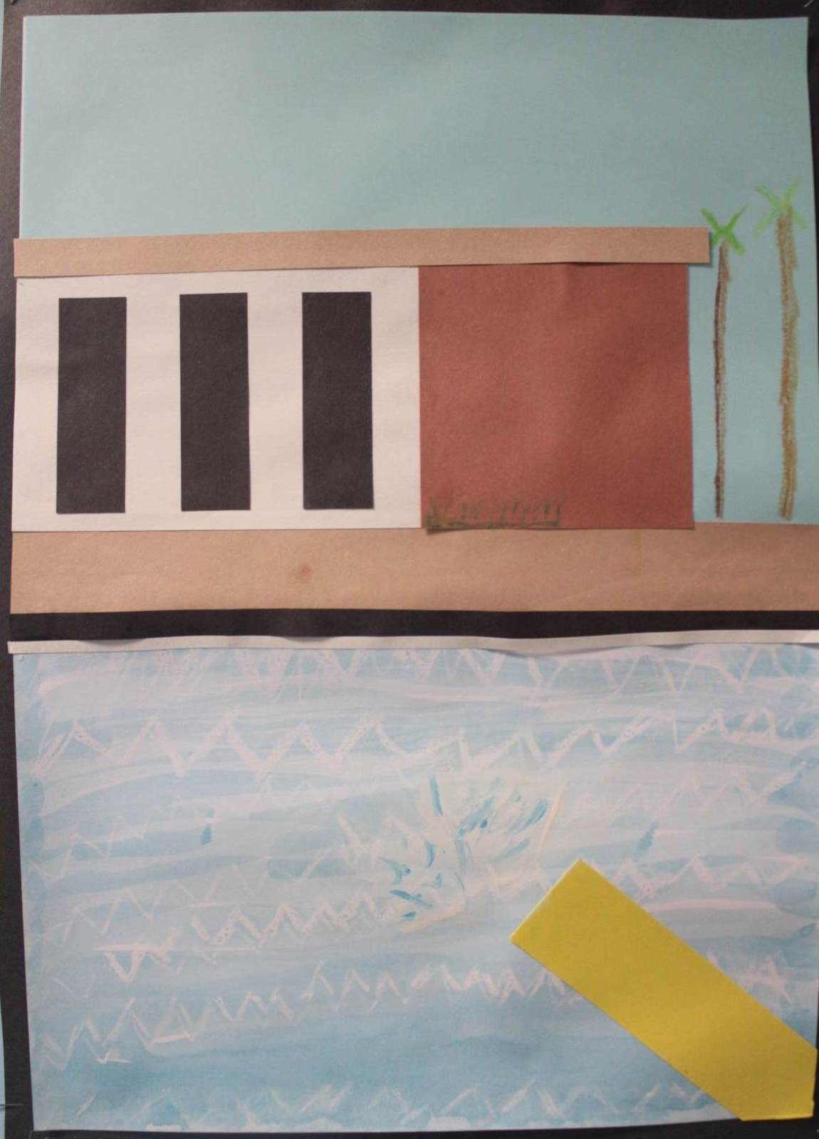 Class 4 have been looking at the British artist David Hockney and his painting A Bigger Splash. The children tried out different techniques to represent water before creating their own version of A Bigger Splash, choosing their preferred water technique for the pool and using collage for the buildings.