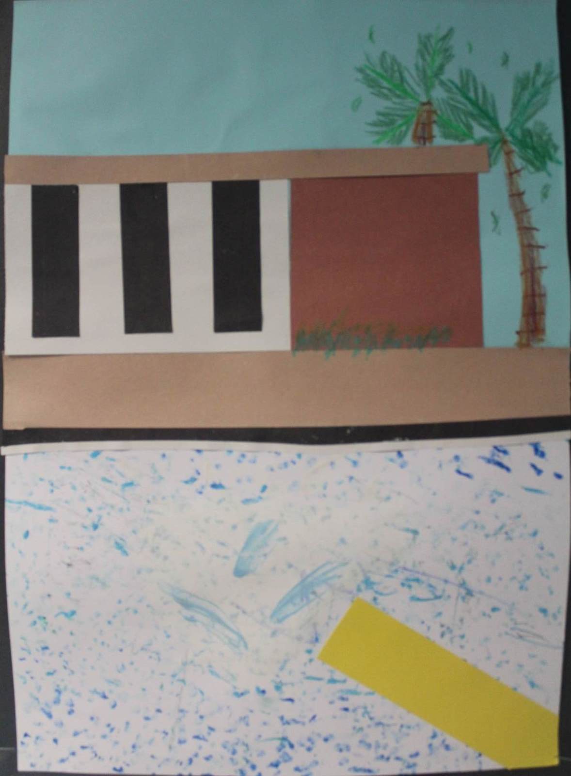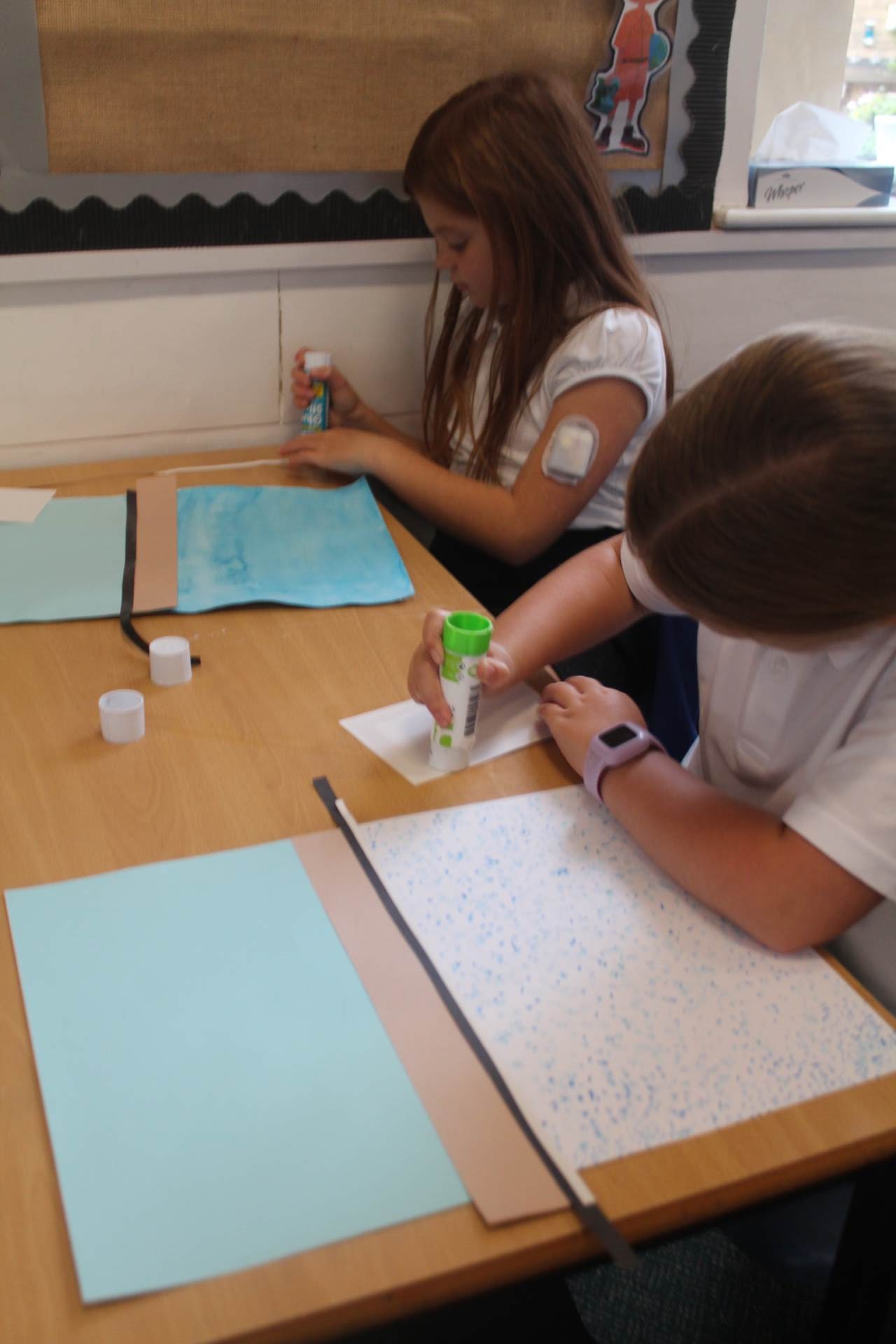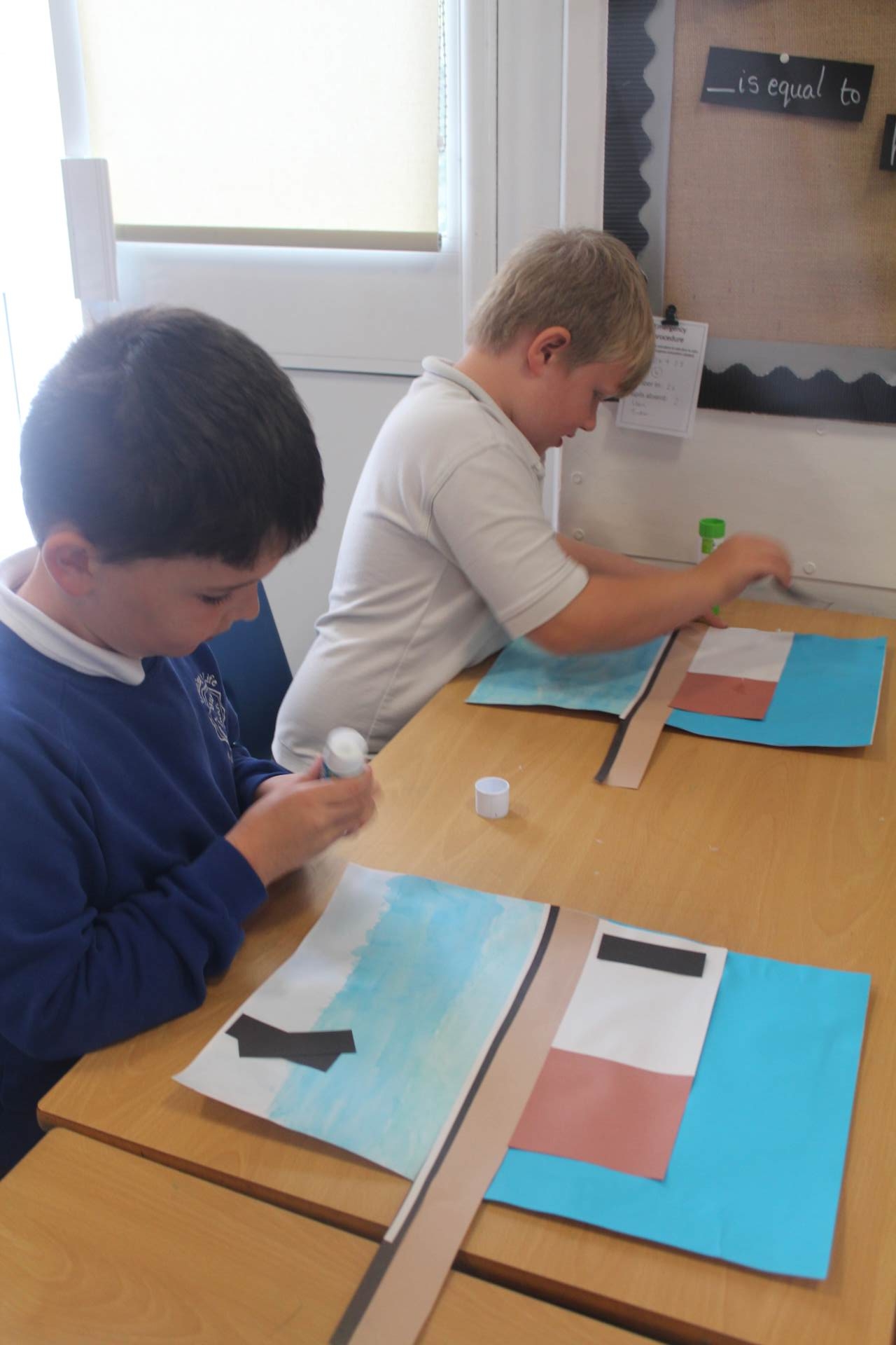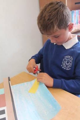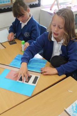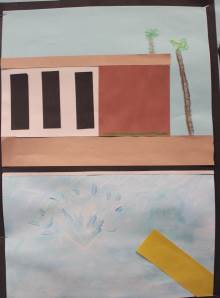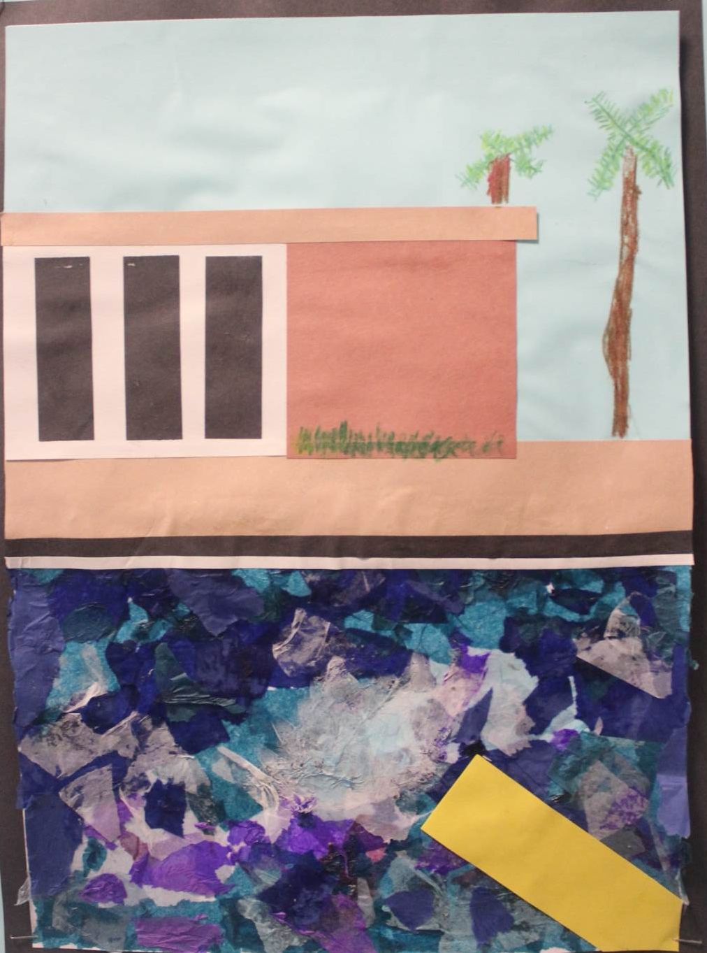 Class 4 have been looking at the British artist David Hockney and his painting A Bigger Splash. The children tried out different techniques to represent water before creating their own version of A Bigger Splash, choosing their preferred water technique for the pool and using collage for the buildings.