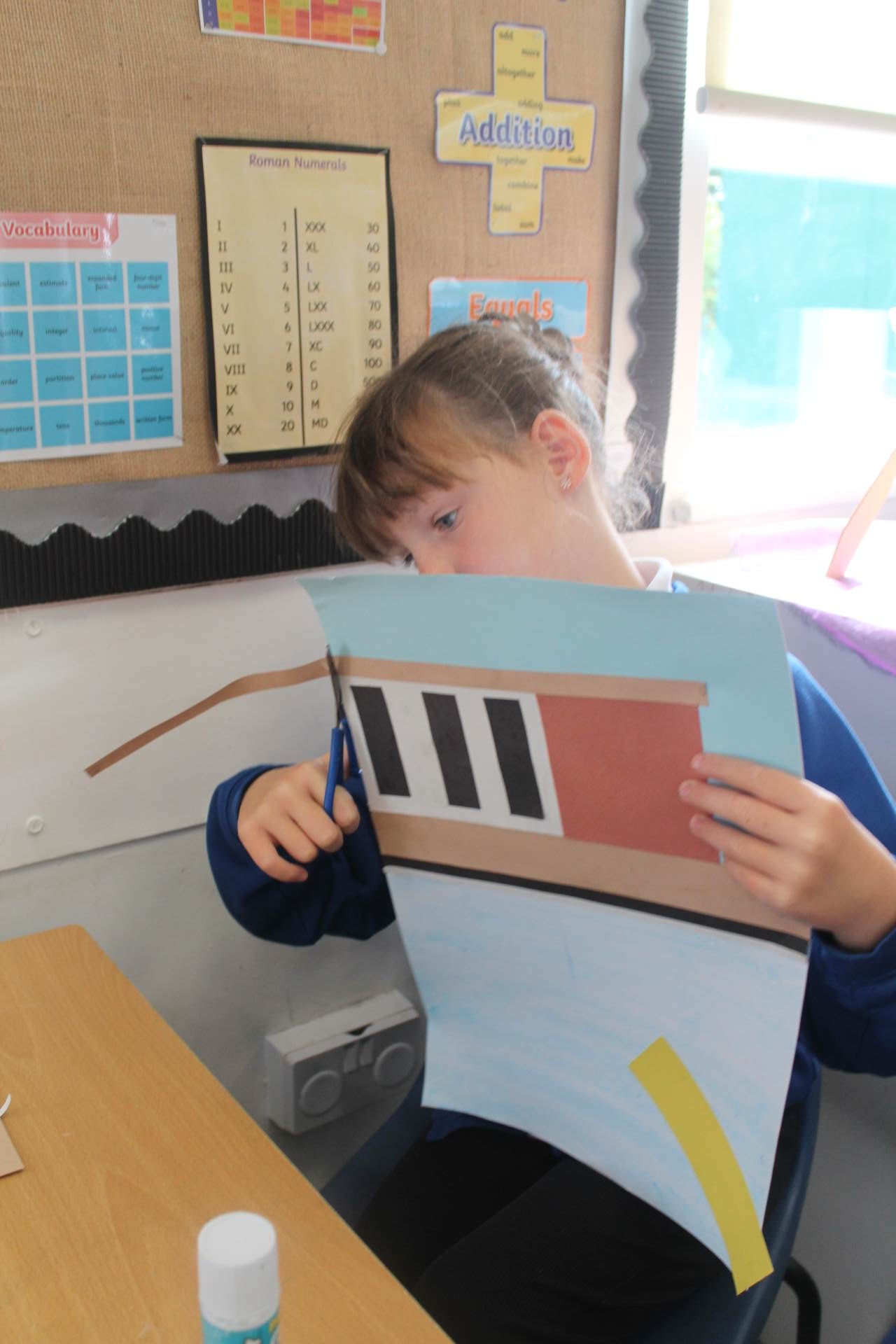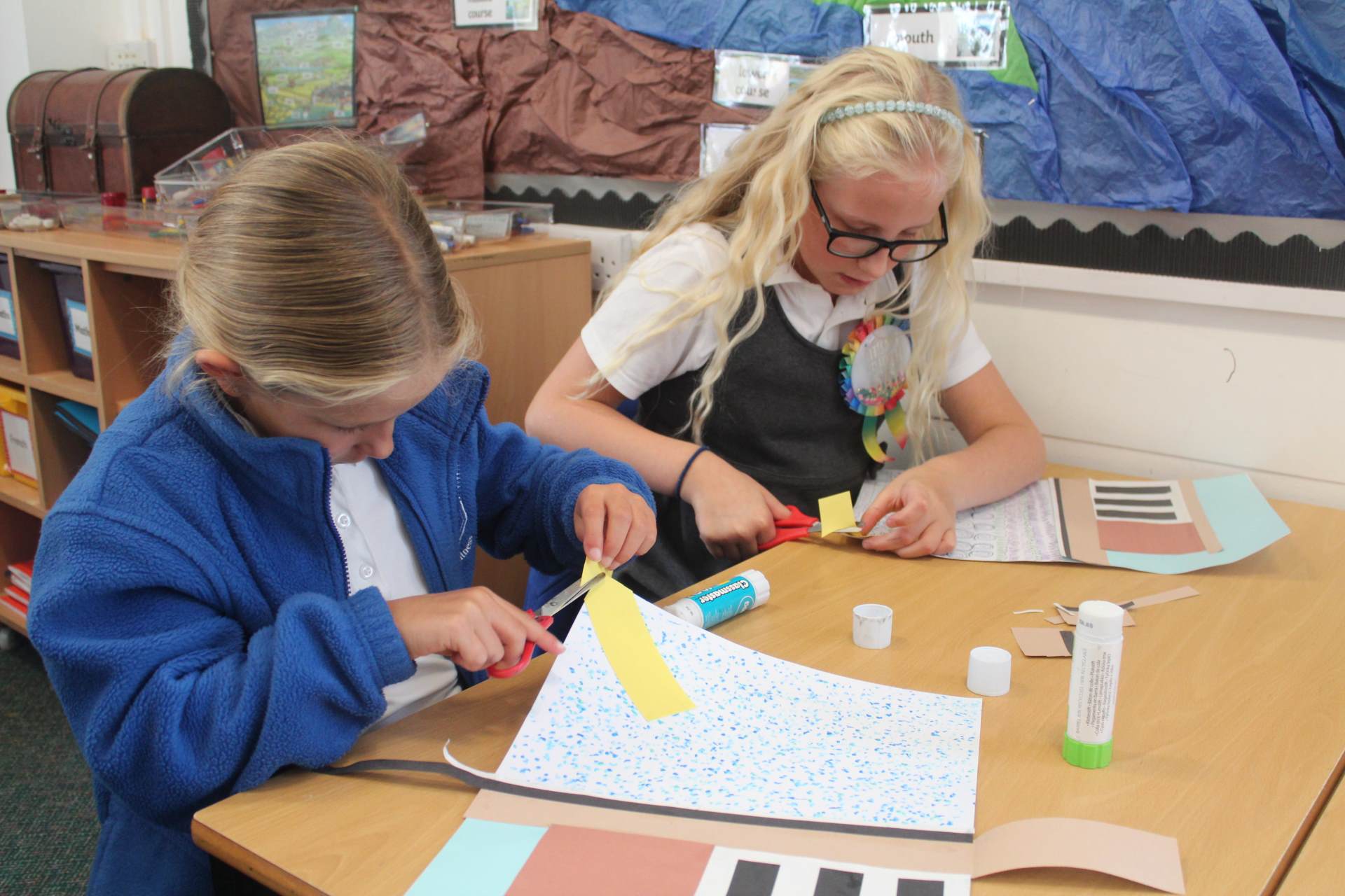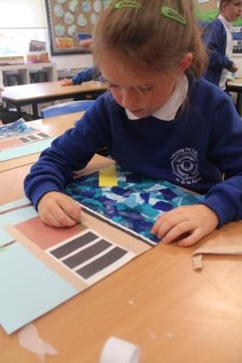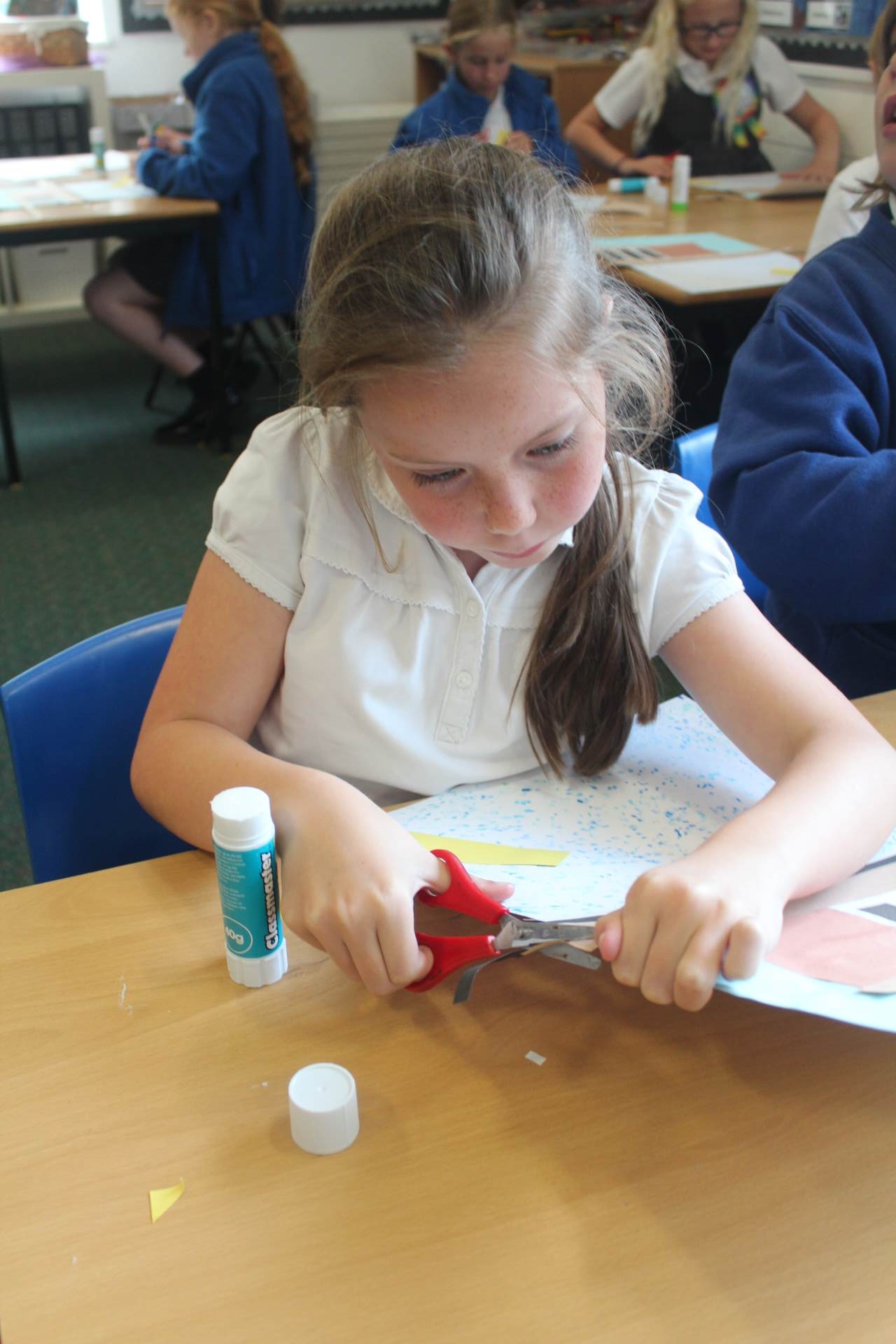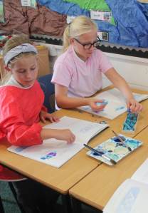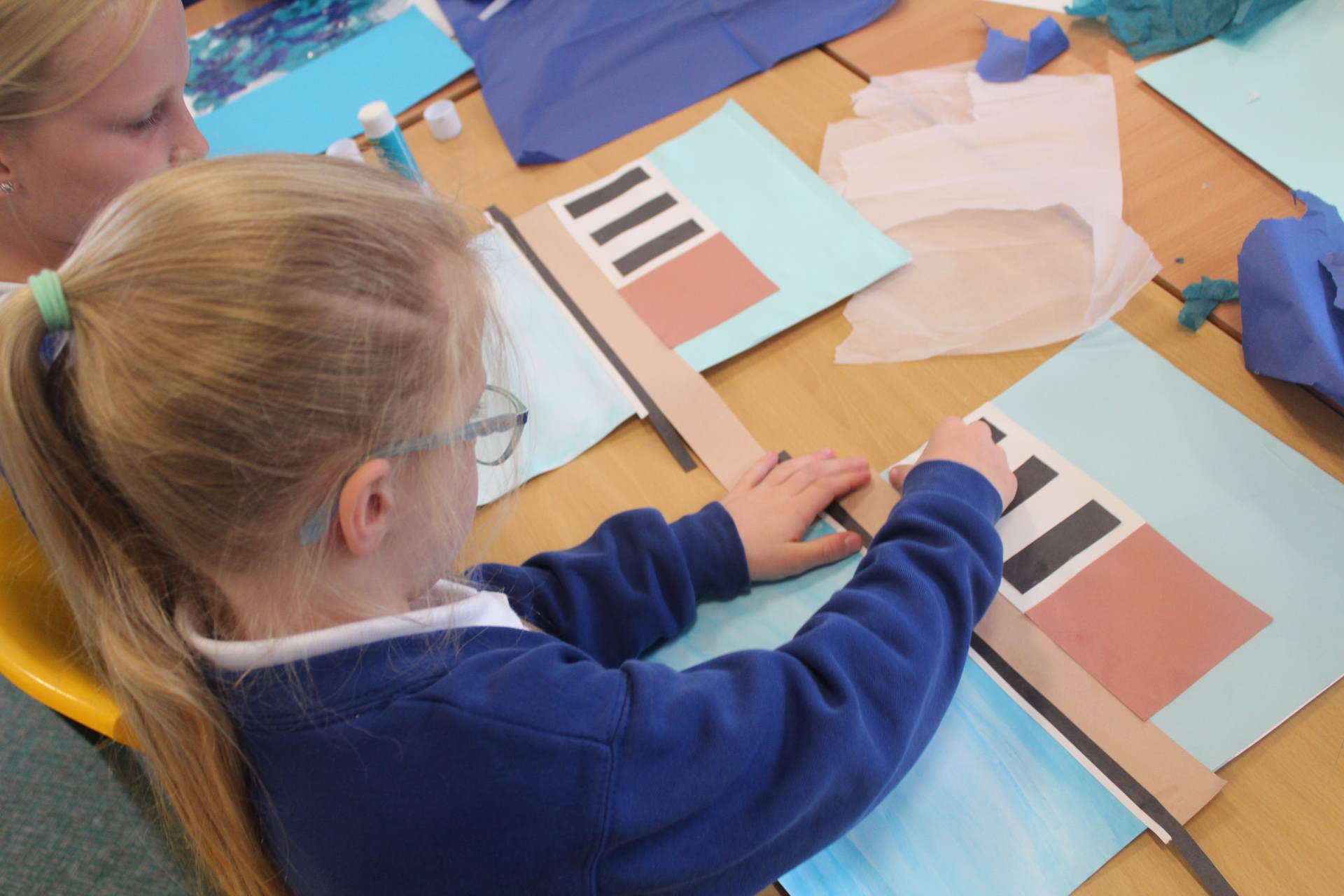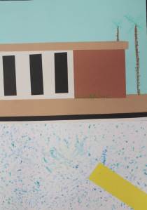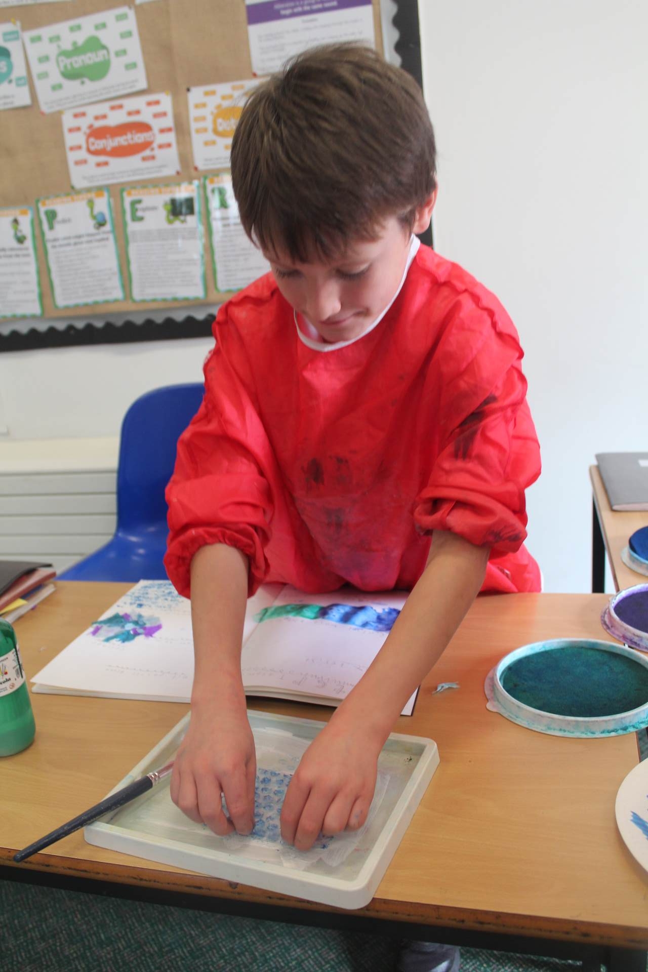 Class 4 have been looking at the British artist David Hockney and his painting A Bigger Splash. The children tried out different techniques to represent water before creating their own version of A Bigger Splash, choosing their preferred water technique for the pool and using collage for the buildings.