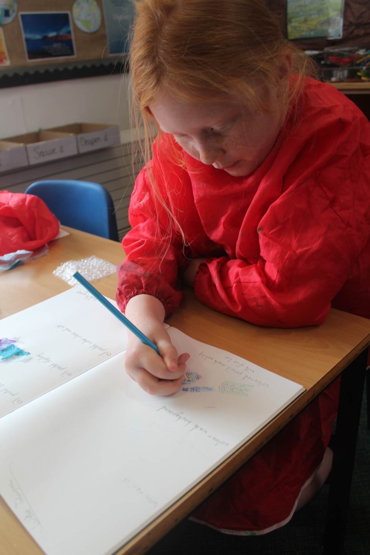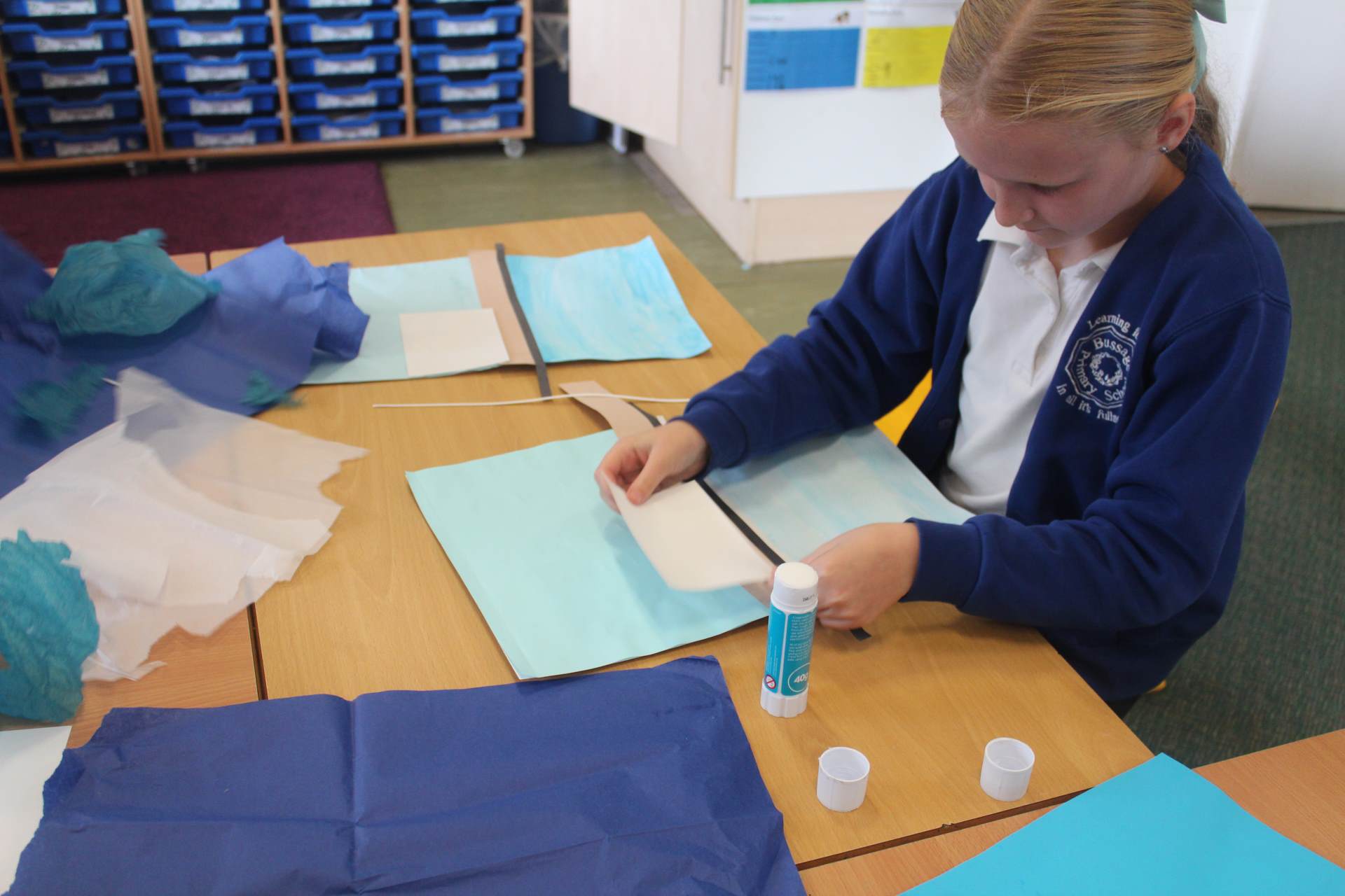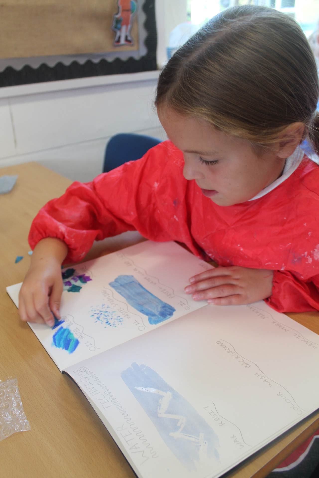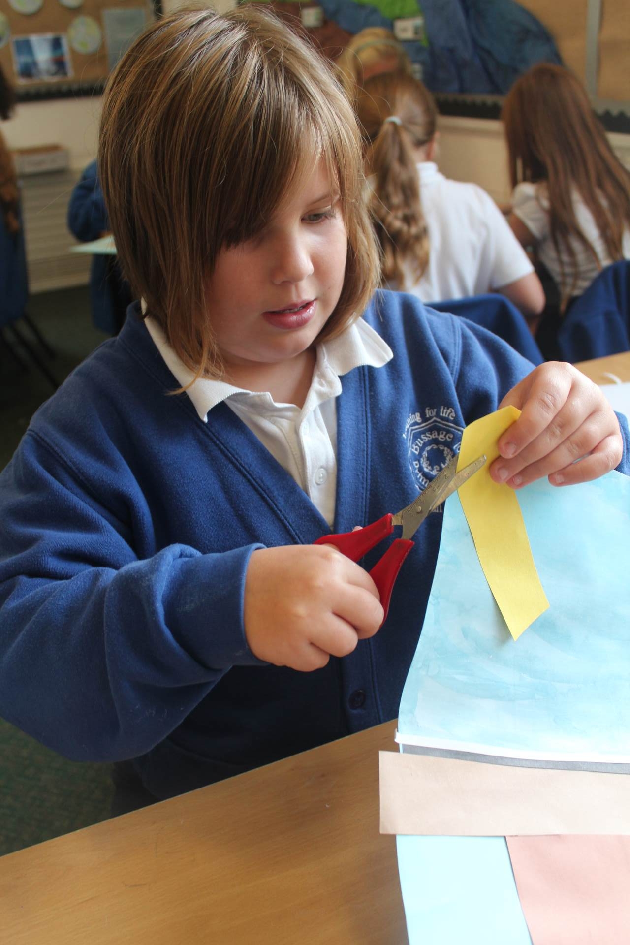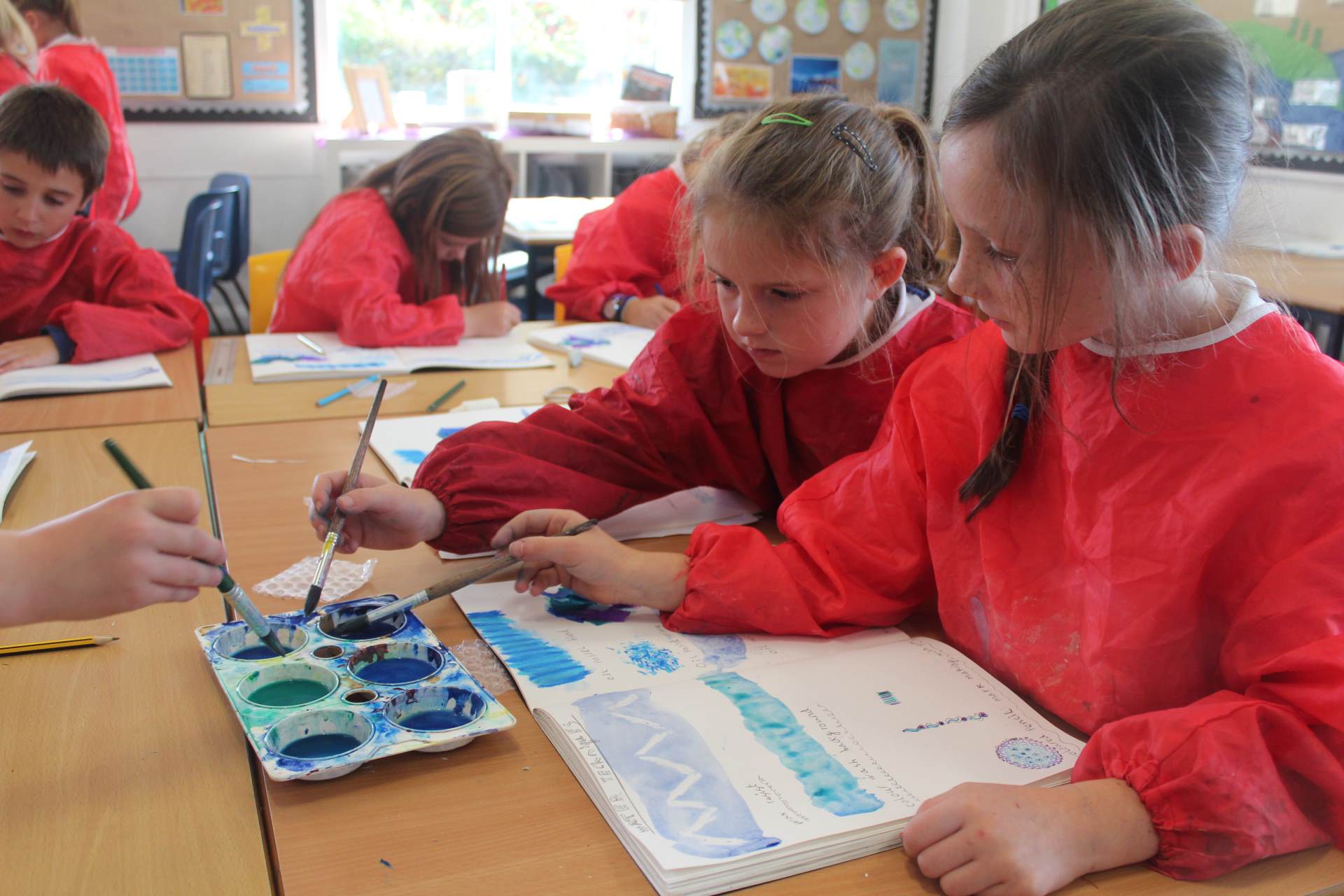 Class 4 have been looking at the British artist David Hockney and his painting A Bigger Splash. The children tried out different techniques to represent water before creating their own version of A Bigger Splash, choosing their preferred water technique for the pool and using collage for the buildings.