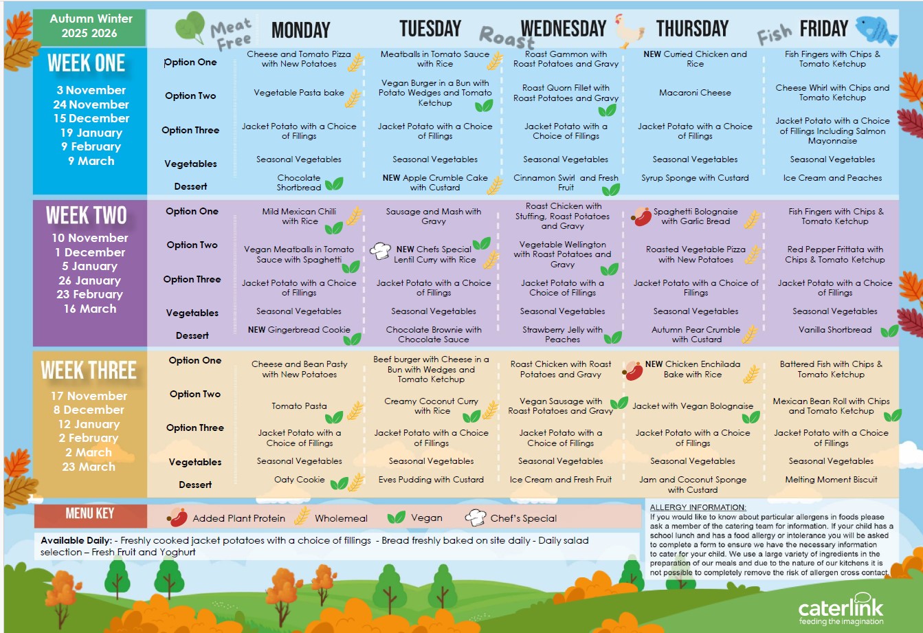GCC Autumn Winter 2025 2026 Primary Menu Information